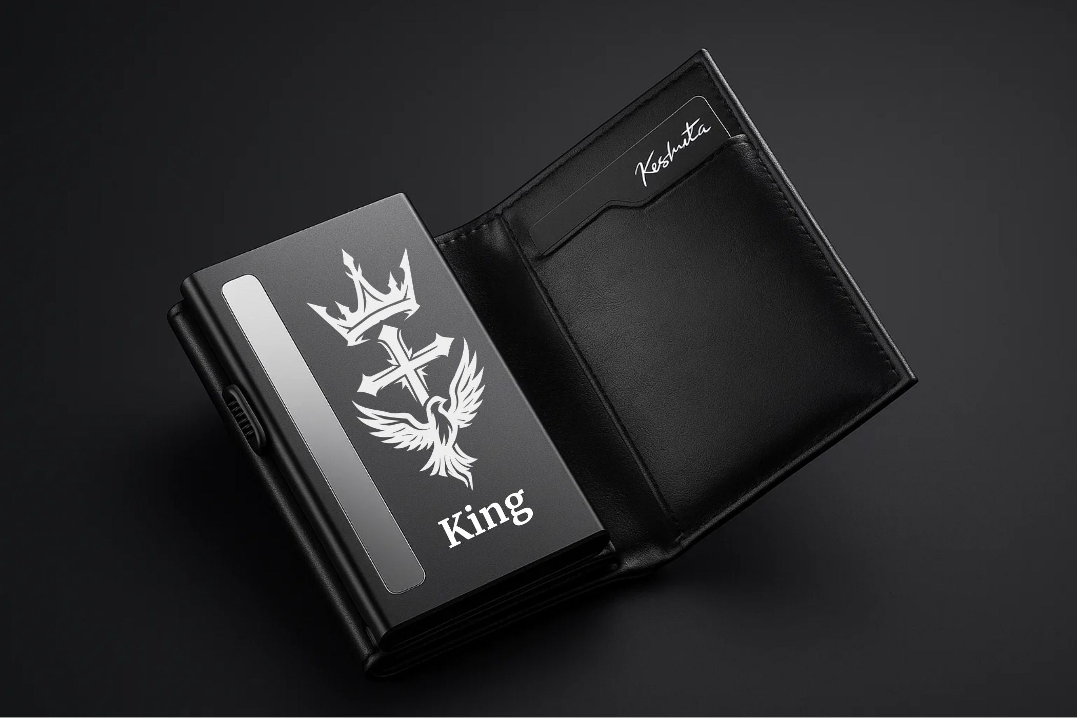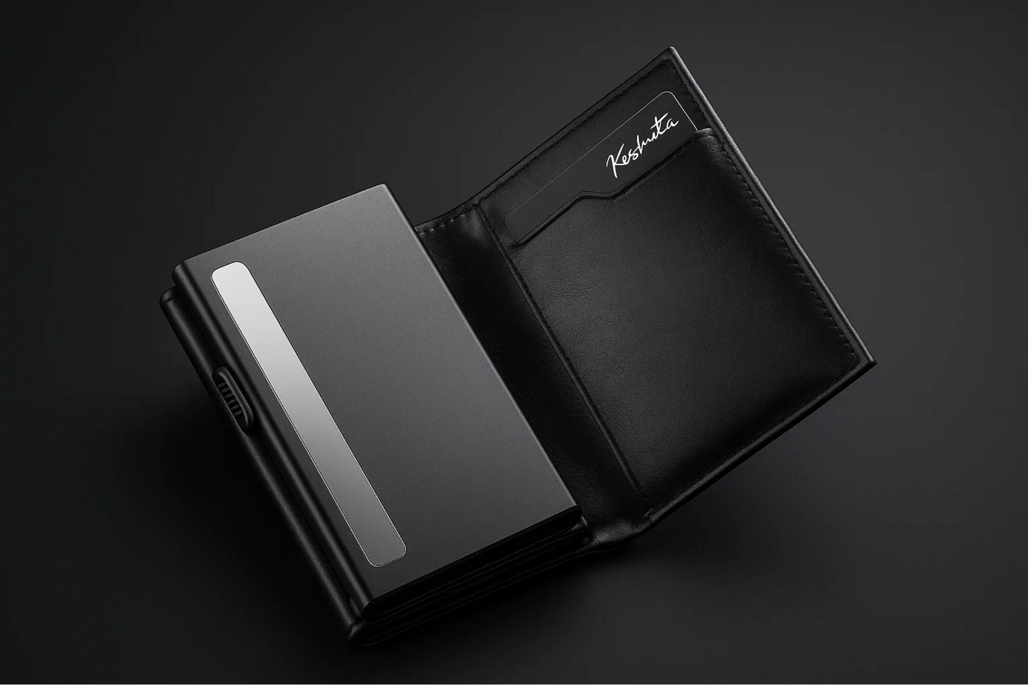 El tarjetero principal está hecho de una carcasa de aluminio anodizado resistente para evitar que las tarjetas se aplasten y además utiliza tecnología avanzada RFID para protegerlas de cualquier intento de clonación o interferencia inalámbrica.